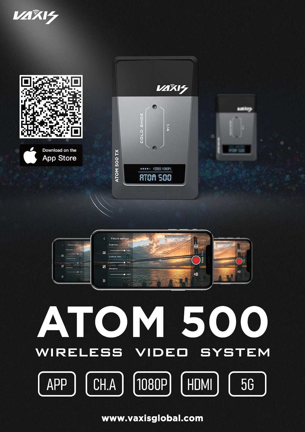 Vaxis Atom 500 HDMI Wireless Video Transmission System 1080P APP Monitoring 500 Feet Long Range Transmitter and Receiver Kit